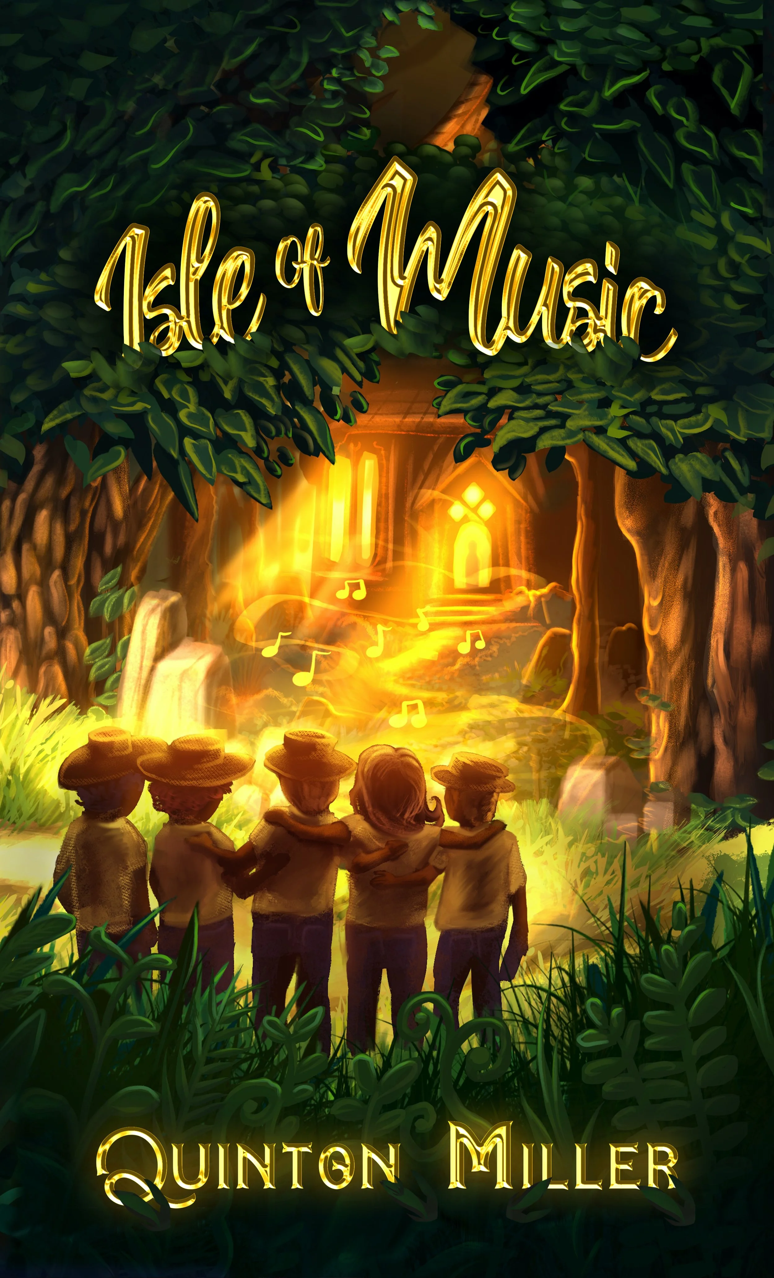 ISLE OF MUSIC, Middle Grade Fantasy Book: Example of full cover wrap with spine, left is back cover, right is front cover